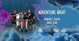 Sabato 3 agosto, dalle 21:00, il Lake Como Adventure Park ospiterà la terza edizione della “Notturna”. L’evento offre percorsi avventura illuminati da gadget fluo, perfetti